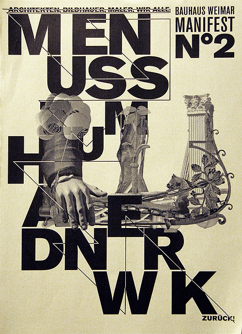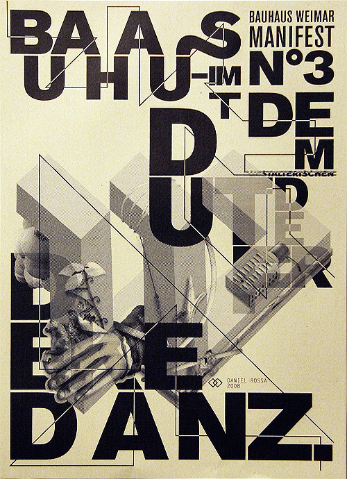 On the basis of two quotes by Walter Gropius three poster prints were developed using only scissors, cutter, sticky tape, printed quotes